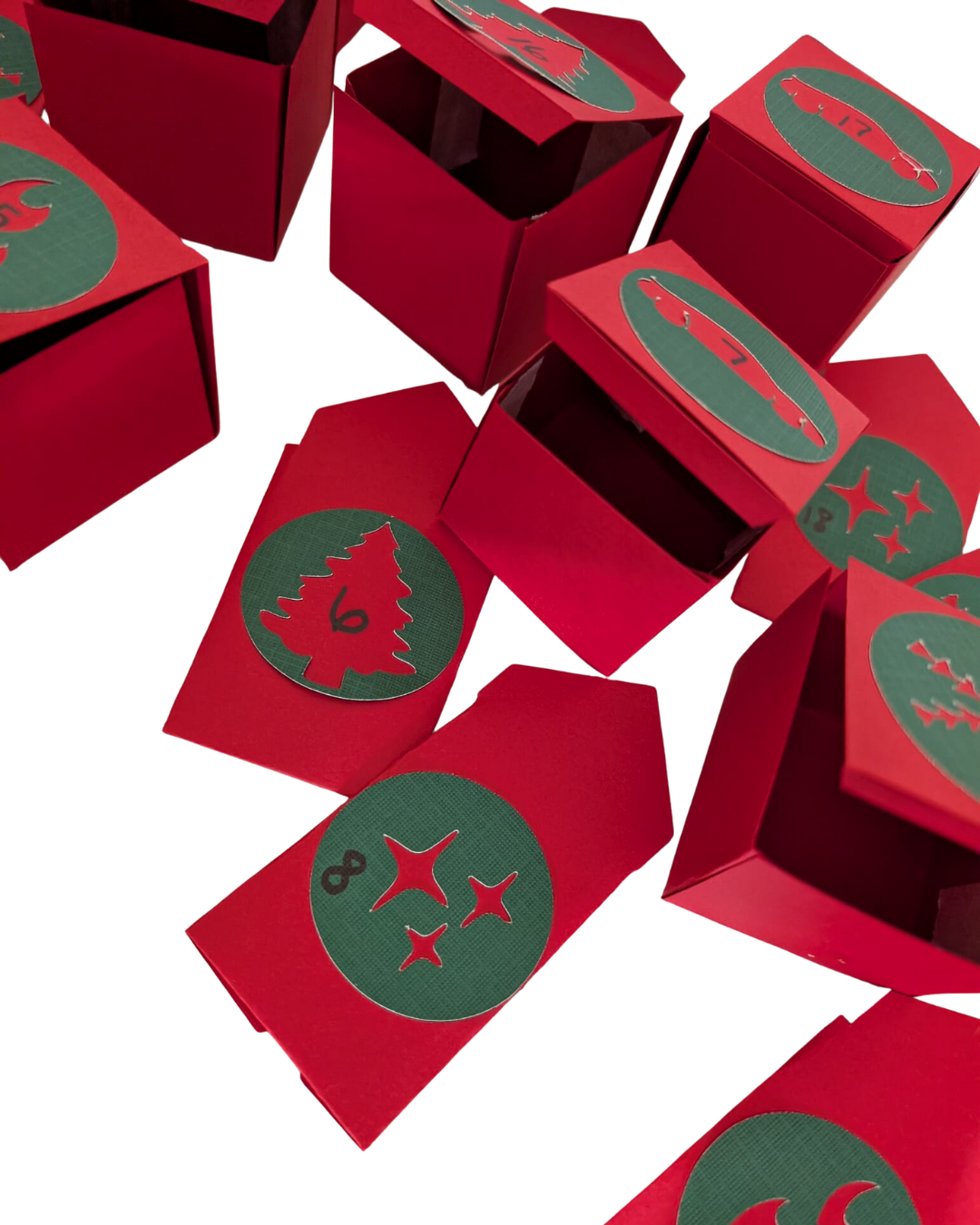 Includes: Custom-designed 2D Advent Calendar with 24 numbered doors, pockets, or shapes depending on design style