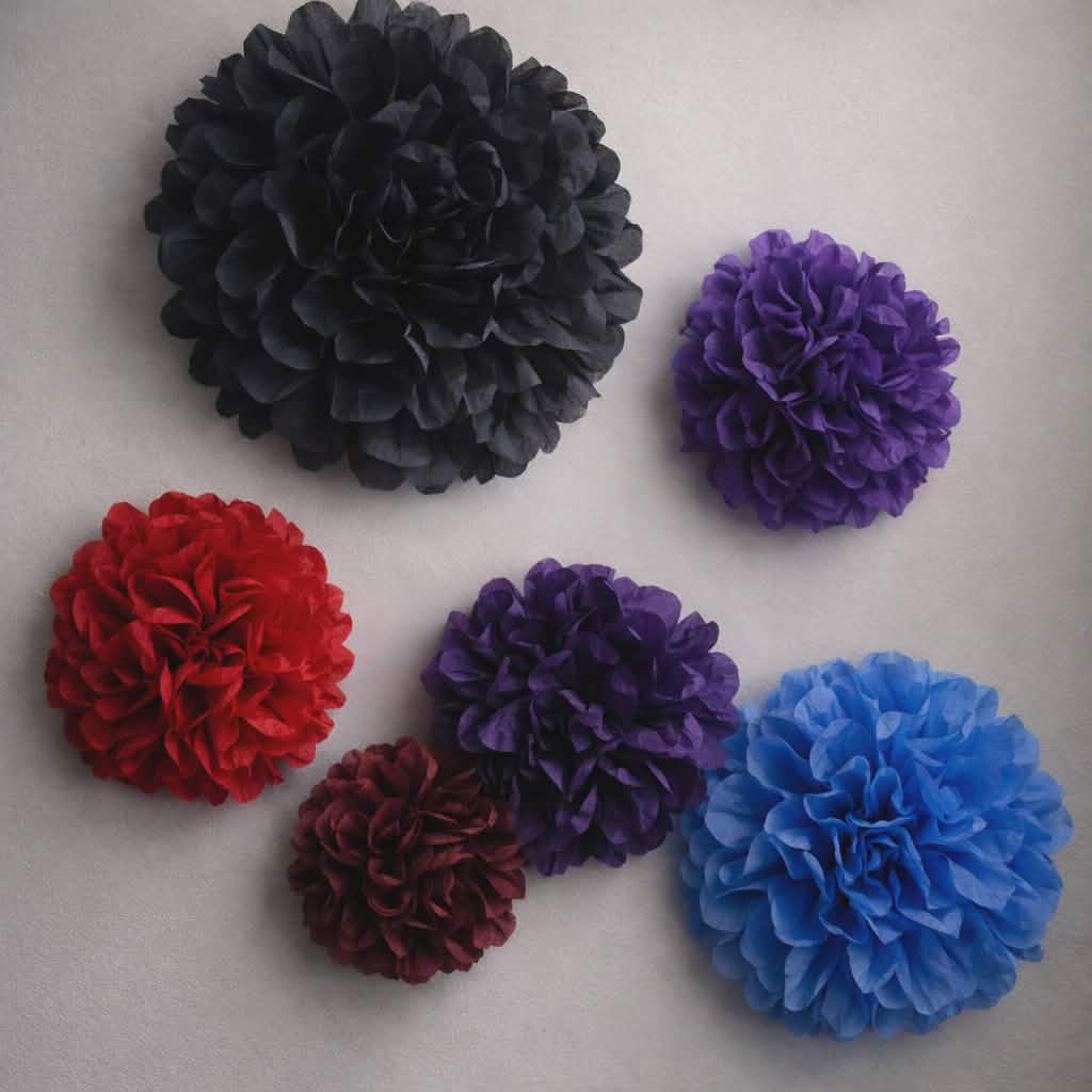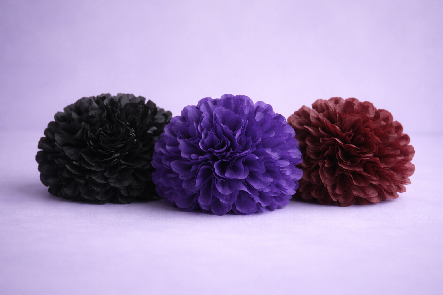 Use these poms for Anti-Valentine's Day parties, Galentine's gatherings, breakup celebrations, gothic-inspired events, or as permanent decor in studios and creative spaces. Hung individually or clustered together, they add depth and softness without losing edge.