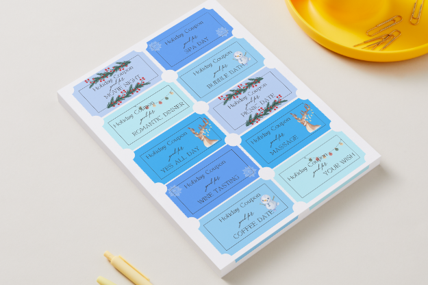 Give the gift of thoughtful gestures, shared moments, and personalized surprises with this Custom Holiday Coupon Book. Designed to be completely tailored to your needs, each coupon book can be created with your choice of themes, styles, and wording—perfect for partners, kids, friends, or family.