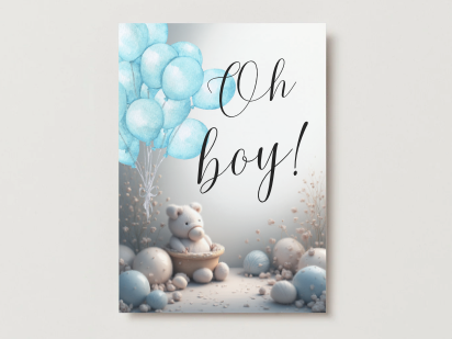 This adorable "Oh Boy!" invitation brings soft, whimsical charm to any baby shower.