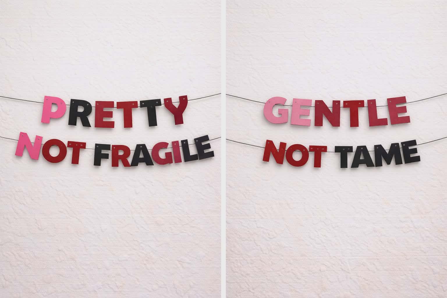 The Soft but Dangerous Block Letter Phrase Banner trades flowing script for strong, unapologetic lettering — making each phrase feel grounded, direct, and powerful. Designed for those who want their decor to say something without dressing it up.