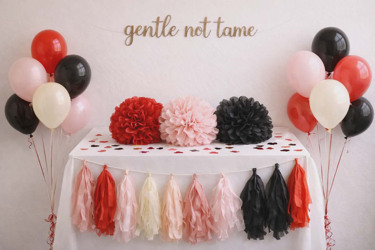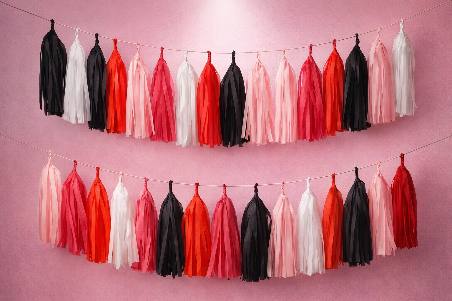 The Soft but Dangerous Tassel Garland is for those who love contrast — softness with bite, romance with presence. Crafted from flowing tissue paper in bold Valentine-forward tones, this garland creates instant visual impact without feeling loud or overdone.