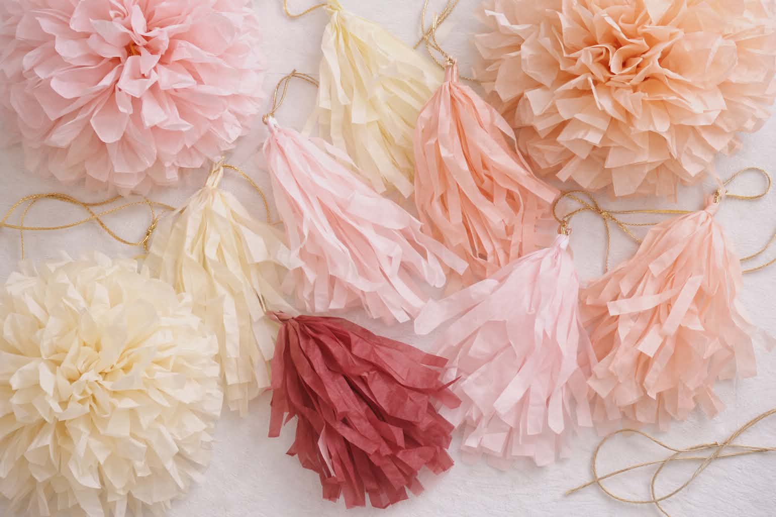 Handmade tissue paper tassels, fully assembled